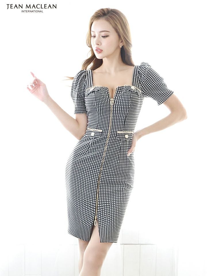 他の画像を見る ポケットデザインのあるドレス☆ [JEANMACLEAN/ジャンマクレーン] 高級ストレッチチェック柄パフスリーブジップワンピース半袖スクエアネックミニドレス ¥ 30,580 税込 在庫切れ お気に入りに追加