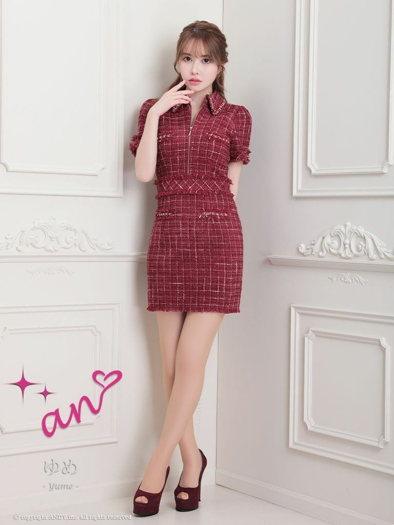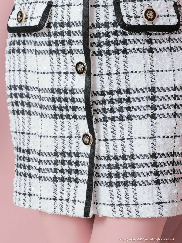 他の画像を見る 大人ガーリーを目指す☆ [an/アン] 高級 ノースリーブ 襟付き ツイード チェック柄 セットアップ ポケットデザイン ゴールドボタン タイトミニドレス ¥ 28,600 税込 在庫切れ お気に入りに追加