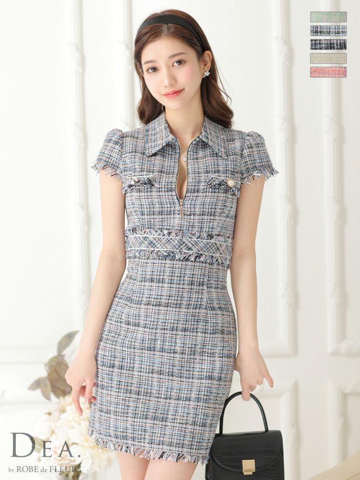 他の画像を見る 高級感のあるツイードが上品に可愛い☆ [DEA.byROBEdeFLEURS/ディアバイローブドフルール] 高級チェック柄ツイード×アシンメトリーノースリーブタイトミニワンピースドレス ¥ 22,880 税込 在庫切れ お気に入りに追加