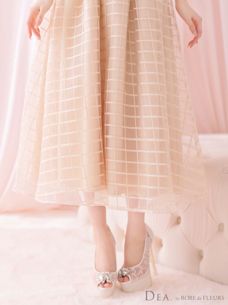他の画像を見る ウエスト切り替えでスタイルアップ☆ [ROBEdeFLEURS/ローブドフルール] 高級オーガンジーチェック柄リボン取り外し可能切り替えベアトップフレア膝丈ドレス ¥ 26,180 税込 在庫切れ お気に入りに追加