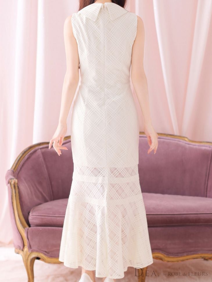 他の画像を見る マーメイドでボディーラインを強調しスタイルアップ☆ [DEA.byROBEdeFLEURS/ディアバイローブドフルール] 高級シースルーネックリボンワンカラーチェック柄ノースリーブフレアマーメイドロングドレス ¥ 32,780 税込 在庫切れ お気に入りに追加