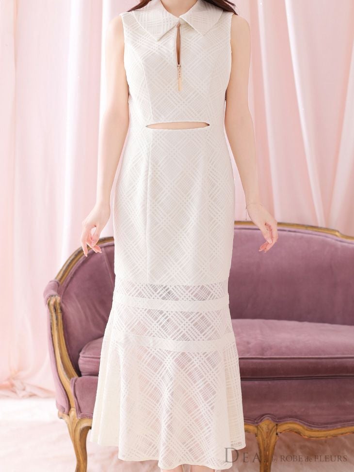 他の画像を見る 透け感のある大人キュートドレス☆ [DEA.byROBEdeFLEURS/ディアバイローブドフルール] 高級 ノースリーブ ウエストカット シースルー チェック柄 襟付き ジップ マーメイド タイトロングドレス ¥ 30,580 税込 在庫切れ お気に入りに追加