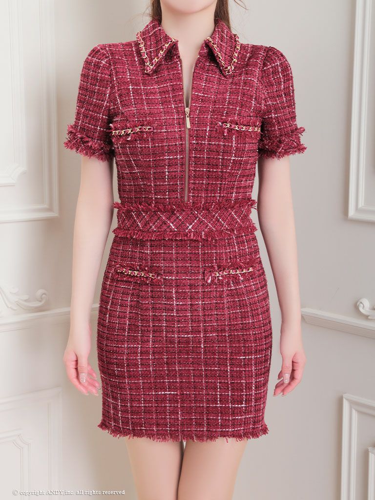 他の画像を見る ゴールドボタンとチェーンがアクセント☆ [an/アン] 高級 ノースリーブ 襟付き ツイード チェック柄 セットアップ ポケットデザイン ゴールドボタン タイトミニドレス ¥ 28,600 税込 在庫切れ お気に入りに追加