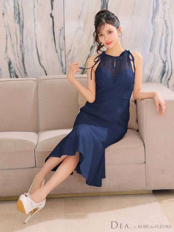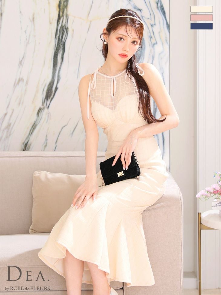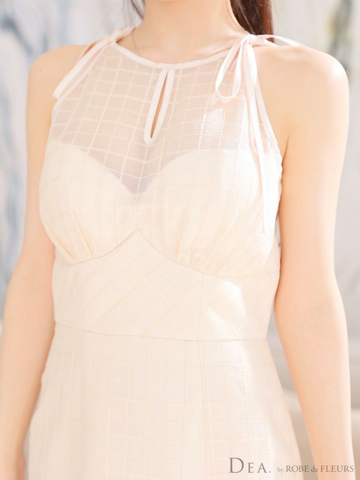 他の画像を見る デコルテの透けが上品でセクシー☆ [DEA.byROBEdeFLEURS/ディアバイローブドフルール] 高級シースルーネックリボンワンカラーチェック柄ノースリーブフレアマーメイドロングドレス ¥ 32,780 税込 在庫切れ お気に入りに追加