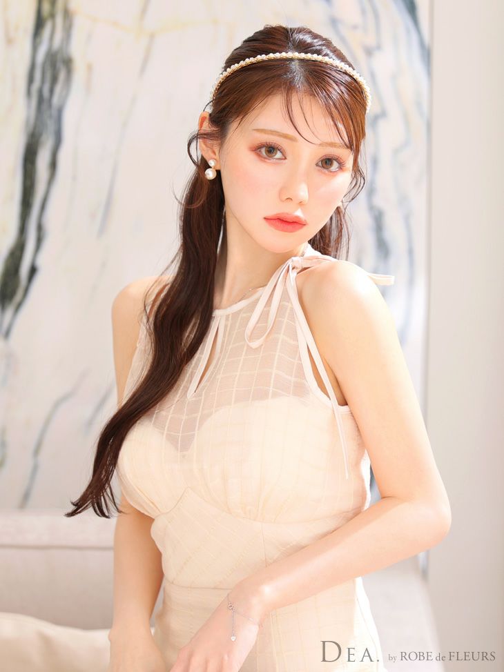 他の画像を見る 上品なカラーで大人綺麗に演出☆ [DEA.byROBEdeFLEURS/ディアバイローブドフルール] 高級シースルーネックリボンワンカラーチェック柄ノースリーブフレアマーメイドロングドレス ¥ 32,780 税込 在庫切れ お気に入りに追加