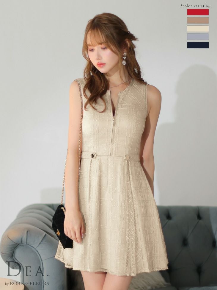 他の画像を見る 前開きフロントジッパーで色っぽい印象に☆ [DEA.byROBEdeFLEURS/ディアバイローブドフルール] 高級チェック柄ノースリーブバストジップチャック柄刺繍レースサイドベルト付きフレアミニドレス ¥ 28,380 税込 在庫切れ お気に入りに追加