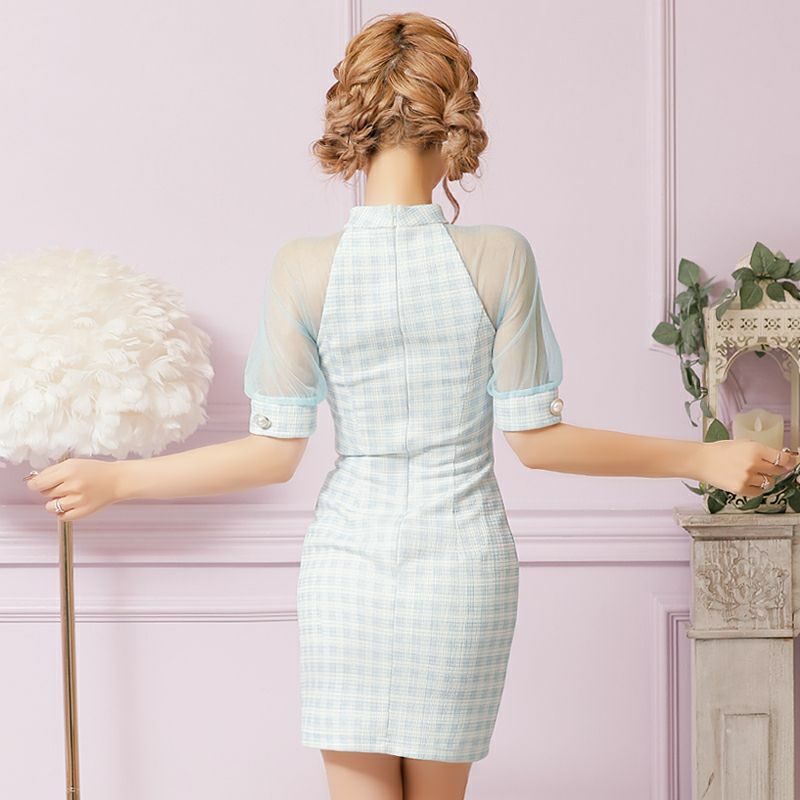 他の画像を見る SEXY&CUTEなデザインが周囲と差を付ける☆ [PURESS/ピュアレス] 高級 袖あり シアースリーブ バストカット フロントボタン チェック柄 谷間魅せ タイトミニドレス ¥ 27,280 税込 在庫切れ お気に入りに追加