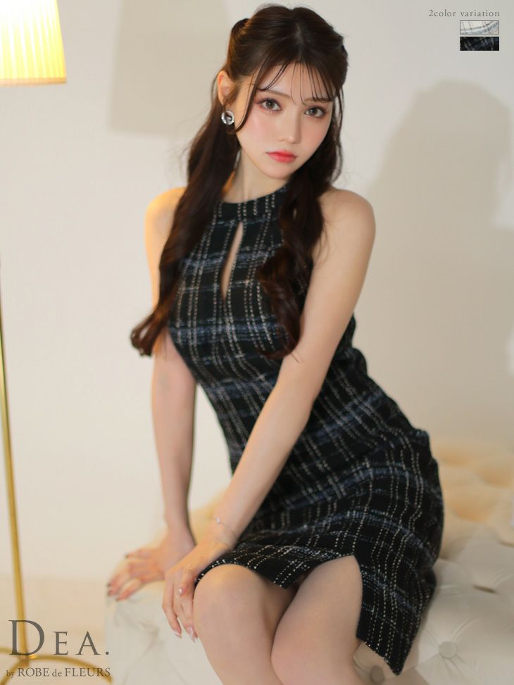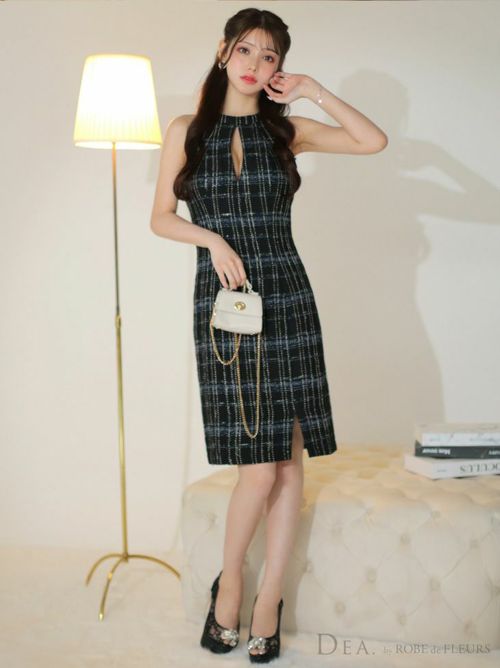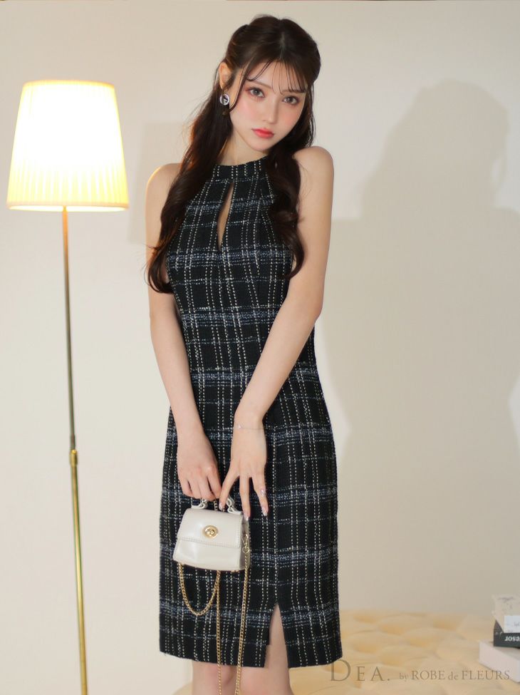 他の画像を見る 大胆に胸開けのデザインで程よく色っぽい☆ SALE [DEA.byROBEdeFLEURS/ディアバイローブドフルール] 高級 ホルターネック バストカット チェック柄 ツイード 谷間魅せ 膝丈ドレス ¥ 29,480 ¥ 19,162 税込 在庫切れ お気に入りに追加