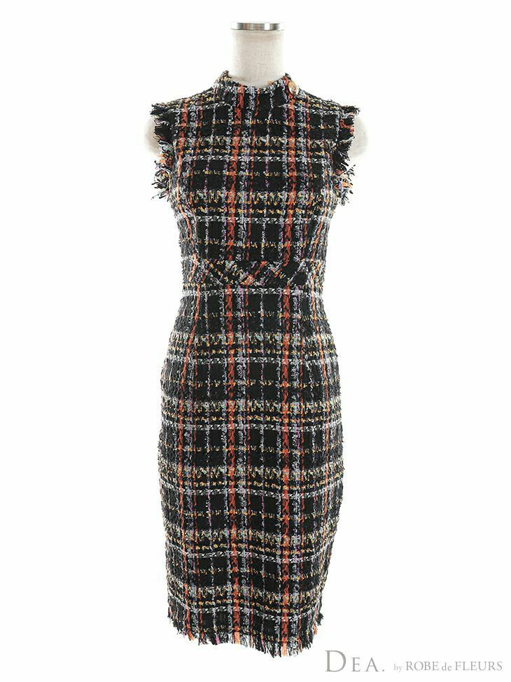 他の画像を見る シンプルで清潔感のあるデザイン☆ [DEA.byROBEdeFLEURS/ディアバイローブドフルール] 高級ノースリーブチェック柄ツイードワンピースフリル膝丈ドレス ¥ 26,180 税込 在庫切れ お気に入りに追加
