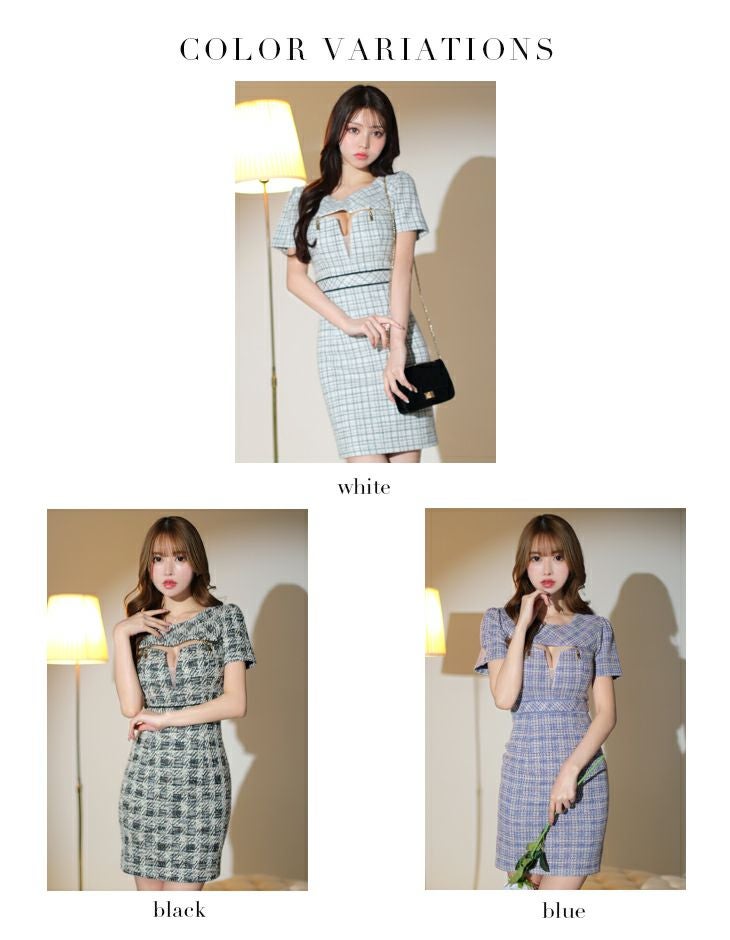 他の画像を見る バストを強調するジップがセクシー★ [ROBEdeFLEURSGlossy/ローブドフルールグロッシー] 高級半袖チェック柄ツイードバストジップ切り替えタイトミニドレス ¥ 28,380 税込 在庫切れ お気に入りに追加