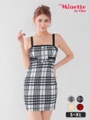 ワンピース 安い タイトミニドレス 大人 ストレッチ チェック柄 キャミソール パールボタンのカラバリ画像