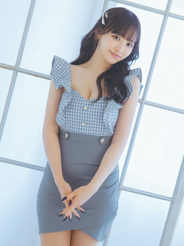 4. [SALE] キャミソール フリル袖 ギンガムチェック柄 切り替え ラップ タイトミニドレス (Sサイズ~XLサイズ) (聖菜/キャバドレス着用)