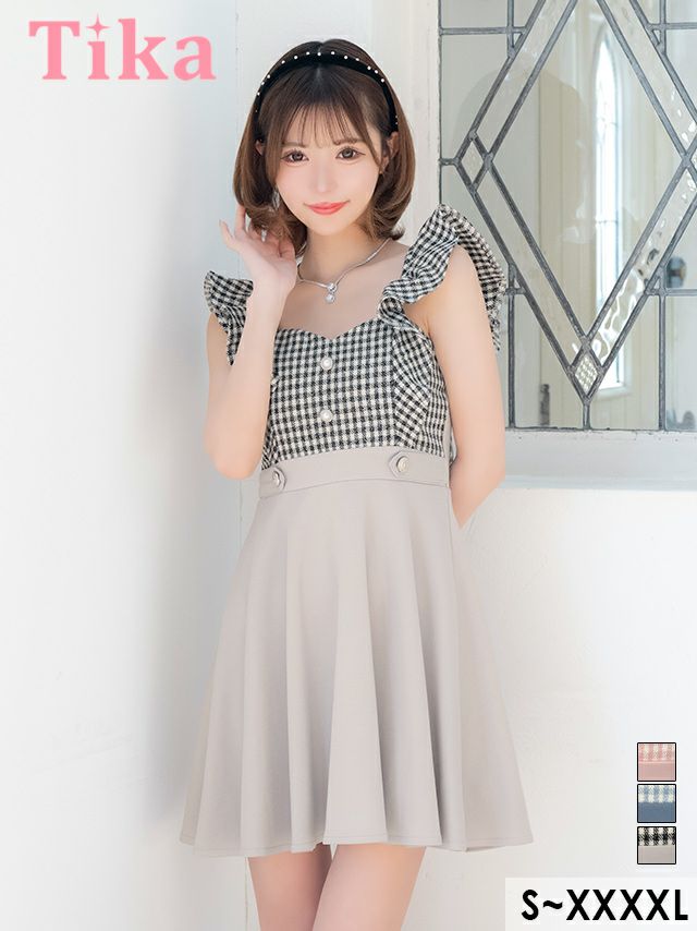 キャバドレス ミニ丈 大きいサイズ フレア ワンピース ミニドレス Aライン チェック
