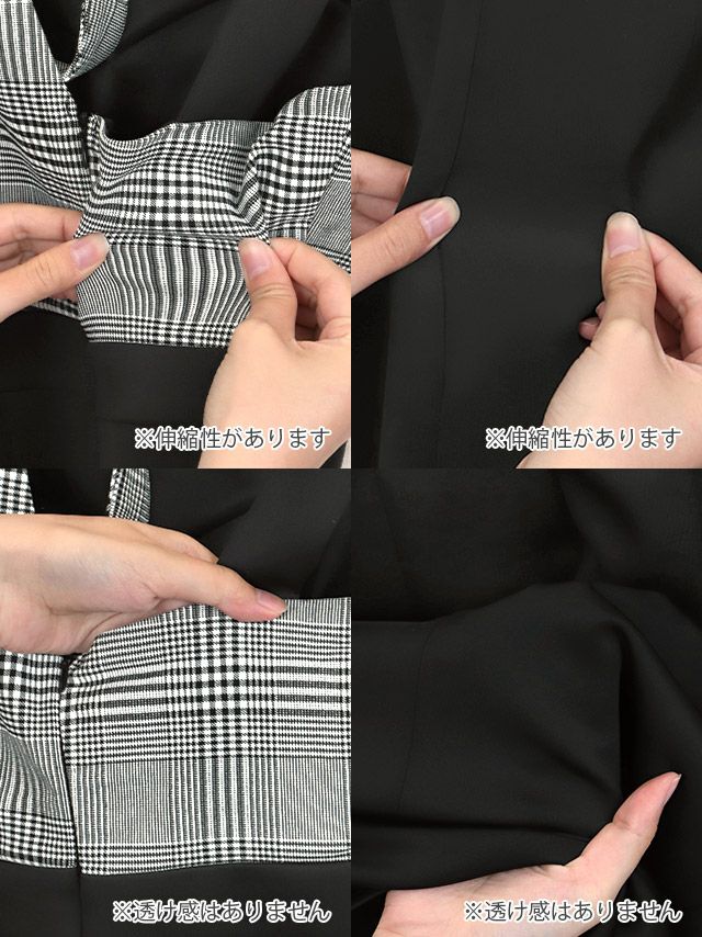 ワンショルダー風グレンチェック柄切り替えストレッチ裾フリルタイトミニドレスのカラーバリエーション