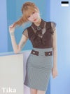 ネックリボンブリーチ付き襟デザインシアーノースリーブ胸元フリル切り替えチェック柄タイトミニドレスの商品詳細1