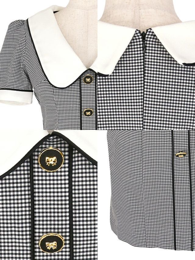 [韓国ドレス] 襟付き チェック柄 半袖 パイピング タイトミニドレス (Sサイズ~Lサイズ) (愛沢えみり/キャバドレス着用)