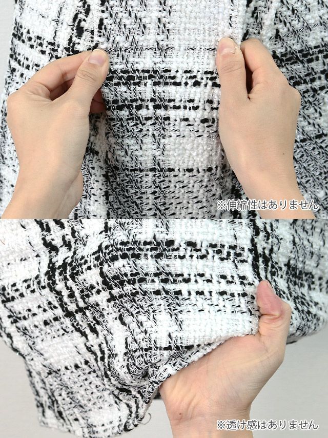 モノトーンチェックノーカラーツイードジャケットワンピースセットアップ スーツ