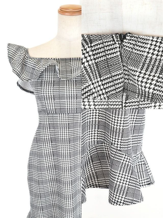 千鳥格子柄フリルノースリーブタイトミニドレスのイメージ画像1