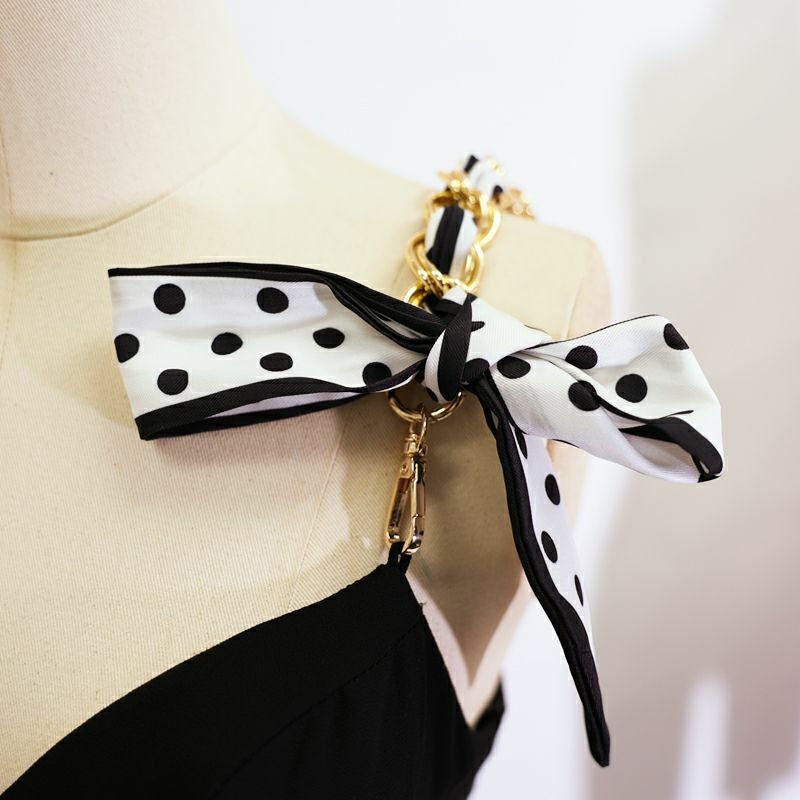 5. SALE [PURESS/ピュアレス] 高級 スカーフ ショルダーチェーン バストカット キャミソール 谷間魅せ フレアミニドレス