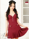 ワンカラー バストジップ プリーツ スカート フレアミニドレスのメイン画像1