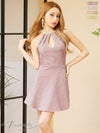 PURESS ピュアレス 高級パールビジューアメリカンスリーブホルターネックフレアミニドレス