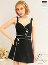 5. SALE [PURESS/ピュアレス] 高級ビジューパールボタンバイカラーノースリーブフレアミニドレス