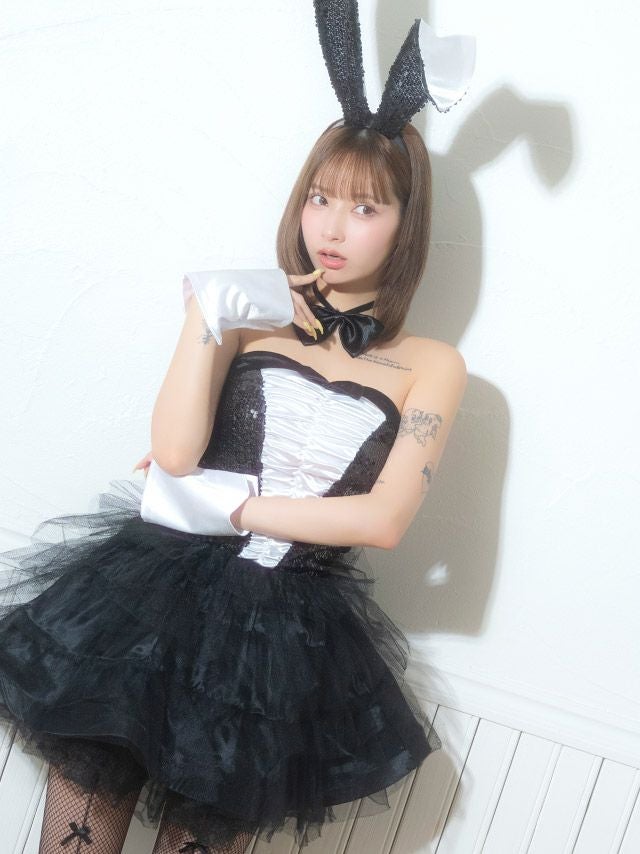 バニー コスプレ キラキラ スパンコール リボン チュール フレアスカート メイド風 ガーリー 4点セットのイメージ画像1