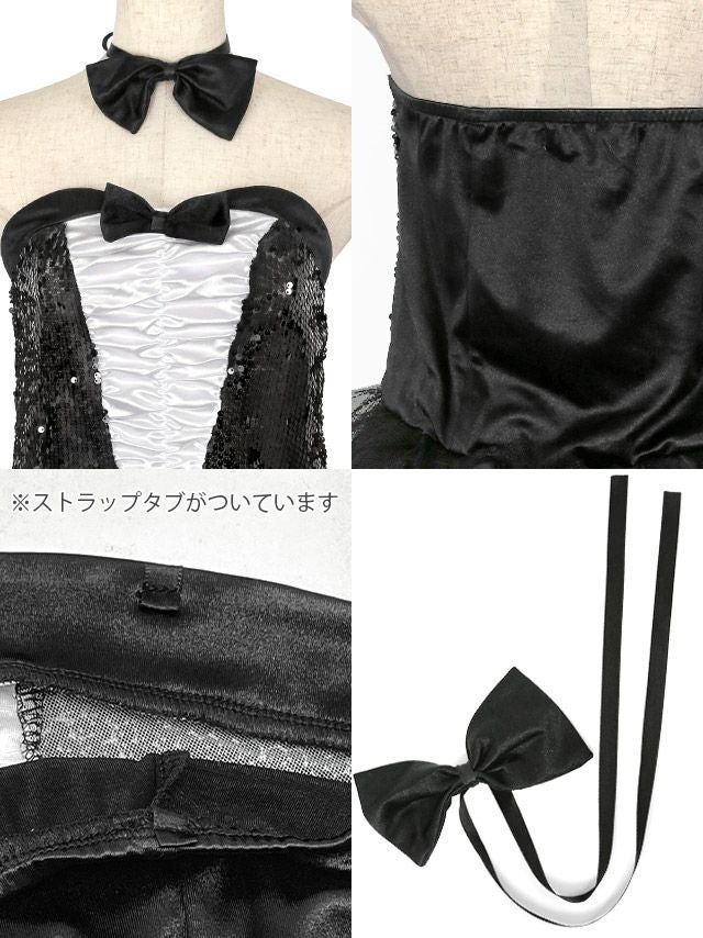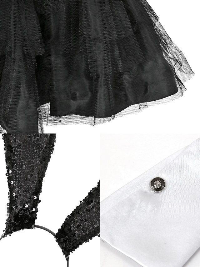 バニー コスプレ キラキラ スパンコール リボン チュール フレアスカート メイド風 ガーリー 4点セットの詳細アップ バニー コスプレ キラキラ スパンコール リボン チュール フレアスカート メイド風 ガーリー 4点セットの詳細アップ