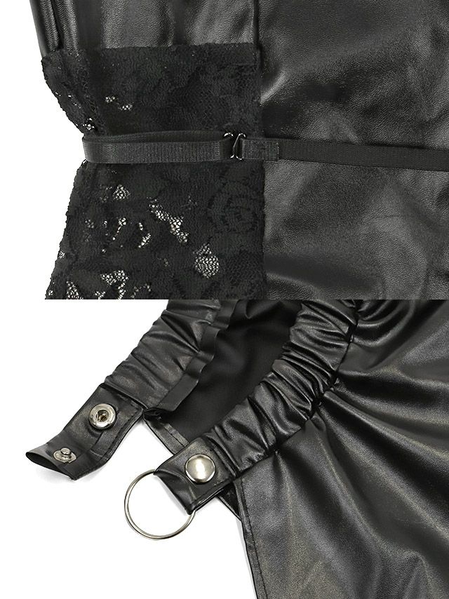 5. [SALE] コスプレ イースター バニー [SALE] コスプレ ブラック レザー ハイレグ 巻きスカート 谷間 セクシー 4点セット (ワンピース/カチューシャ/ラップスカート/アームカバー)