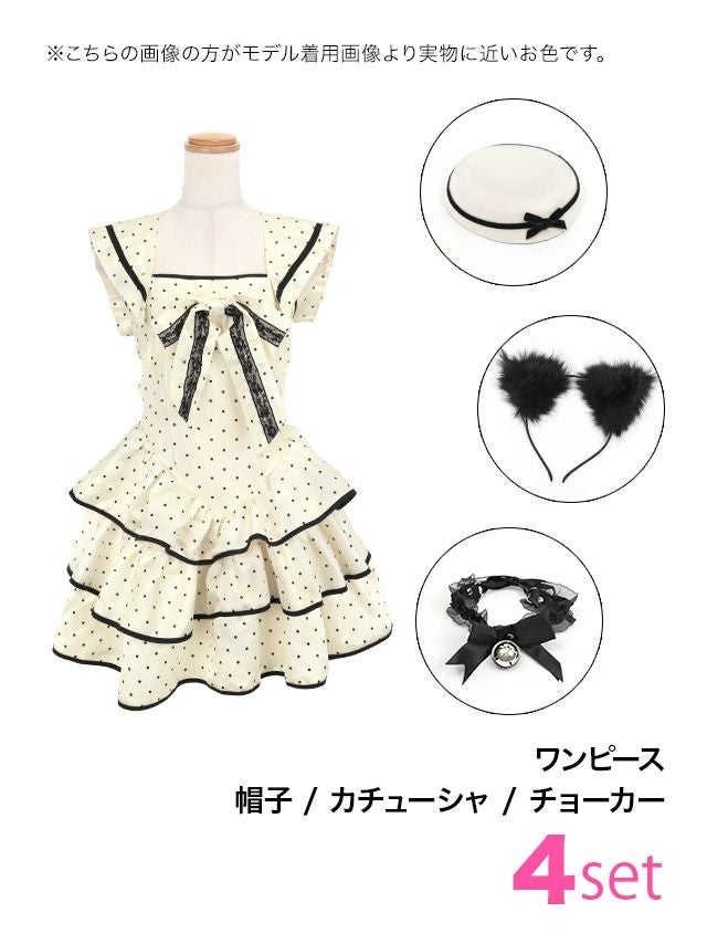 猫 コスプレ 体型カバー ドット フリル フレアスカート バックリボン ガーリー 2Way アニマル 4点セットのセット内容