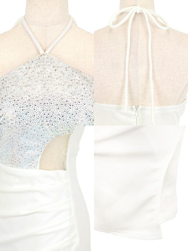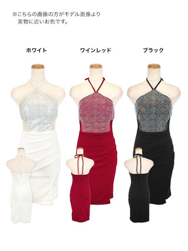 ゴージャスビジューホルターネックくびれタイトミニドレス (Sサイズ~Lサイズ) (PyunA./キャバドレス着用)
