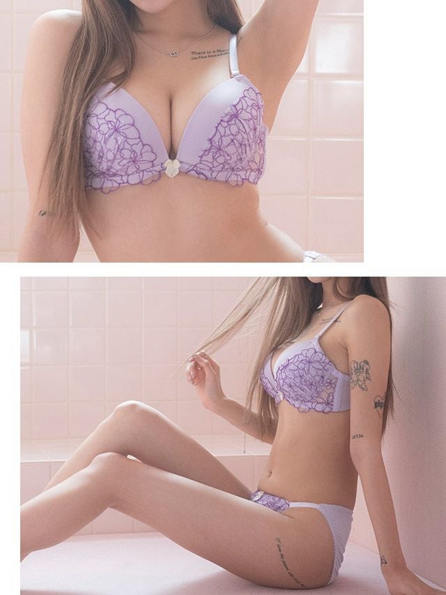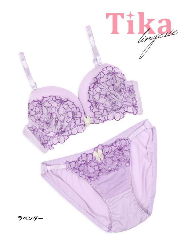 フラワーシアーレース脇高カップブラジャー&ショーツ2点セットの詳細画像