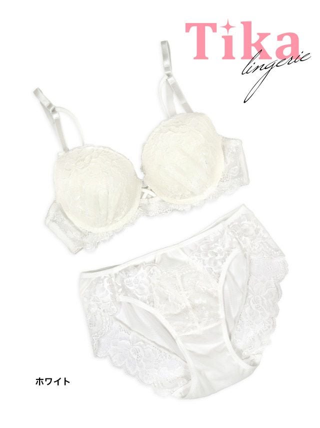 5. [勝負下着] フラワーレースコードクロスカップブラジャー&ショーツ2点セット