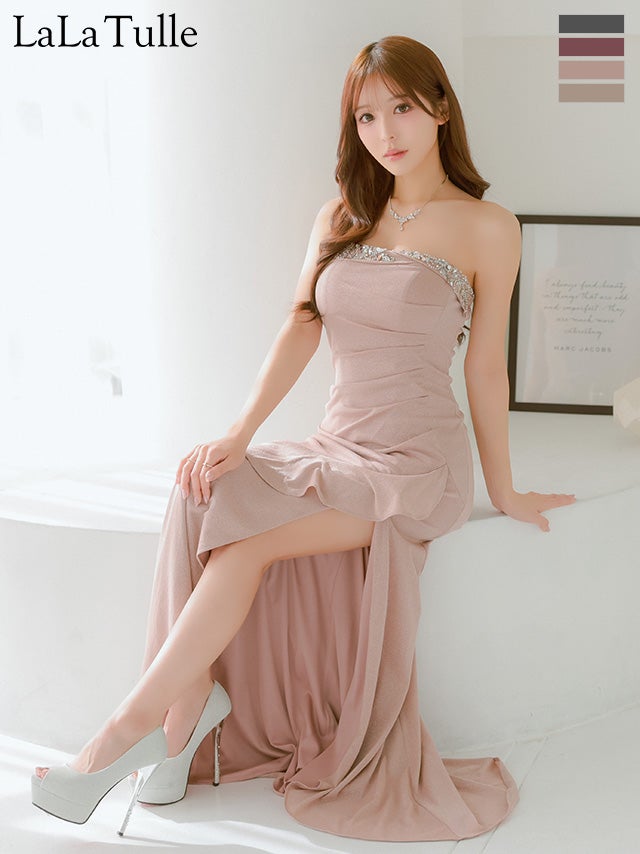 他の画像を見る 華やかなデコルテを演出♡ [Angel-R/エンジェルアール] 高級 ブランド タイトロングドレス 大人 スリット キャミソール ベアトップ 2way フリル ラメ ビジュー (らむ着用) ¥ 37,180 税込 お気に入りに追加