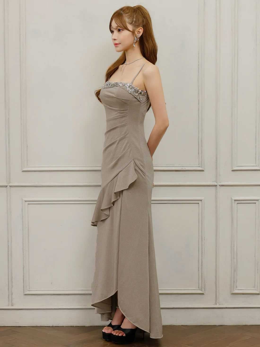女性らしさの中にも色気が漂うロングドレスまで