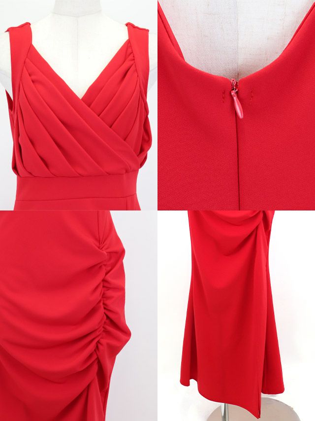 4. ロングドレス プチプラ マーメイド ノースリーブ ストレッチ シンプル ラウンジ ワンカラー 大人 背中魅せ 赤ドレス XL 安い キャバドレス (波北かほ着用) [th-ld9203]