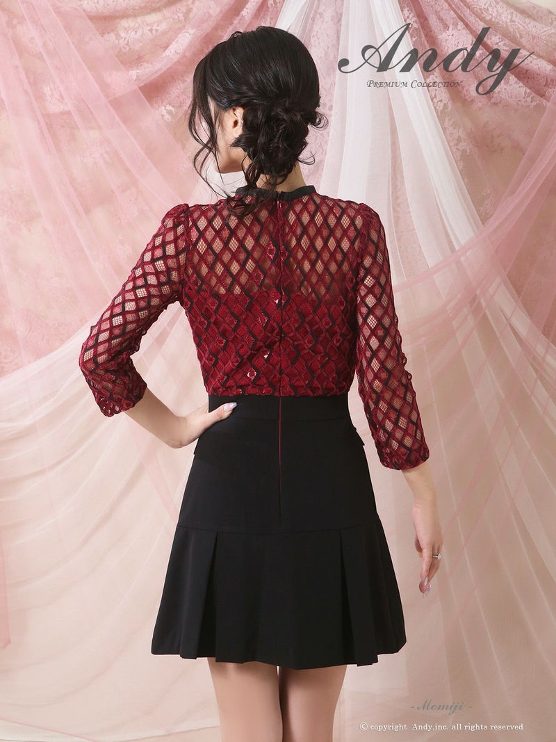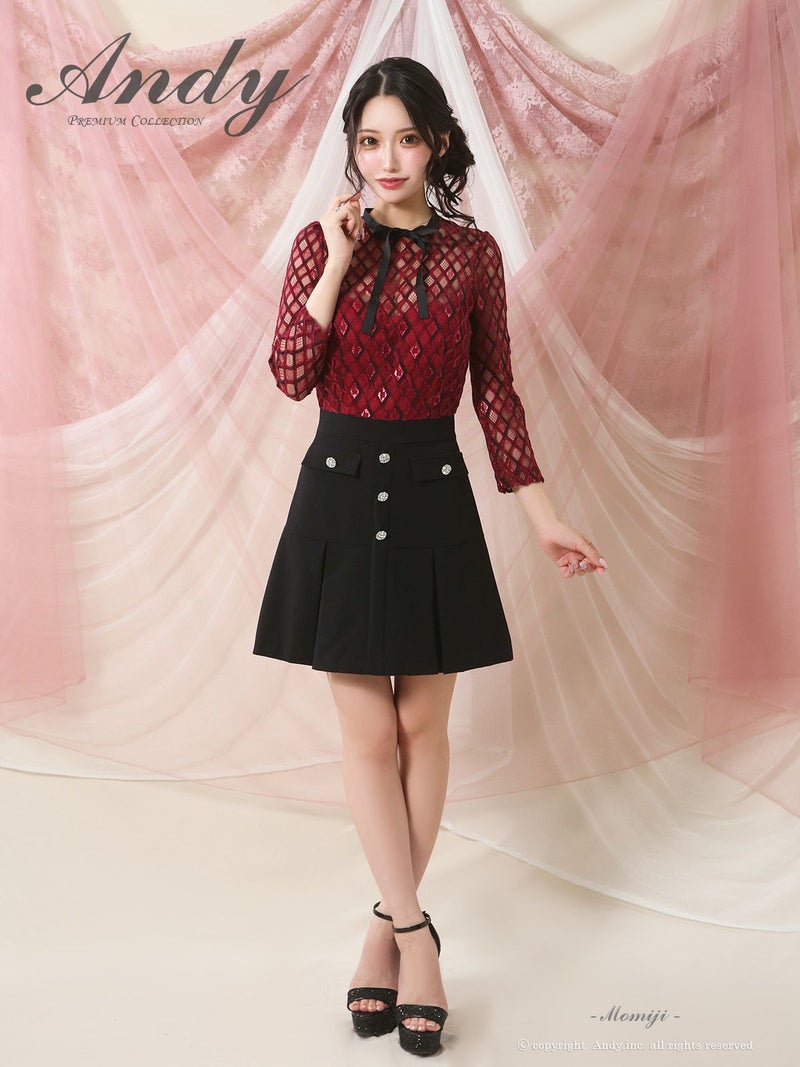 キャバドレス Andy アンディ 高級 ブランド Aライン ミニドレス レース 袖あり 七部袖 ネックリボン プリーツスカート ボタン キャバドレス