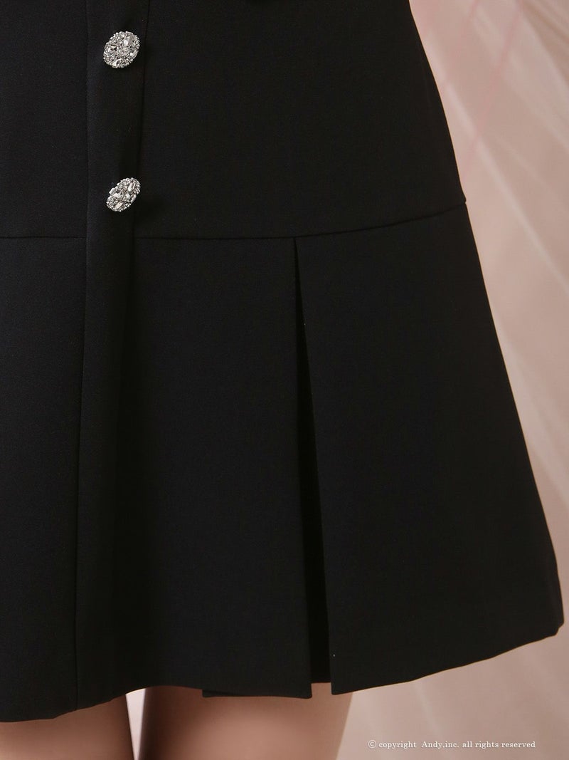 4. [Andy/アンディ] 高級 ブランド Aライン ミニドレス レース 袖あり 七部袖 ネックリボン プリーツスカート ボタン キャバドレス
