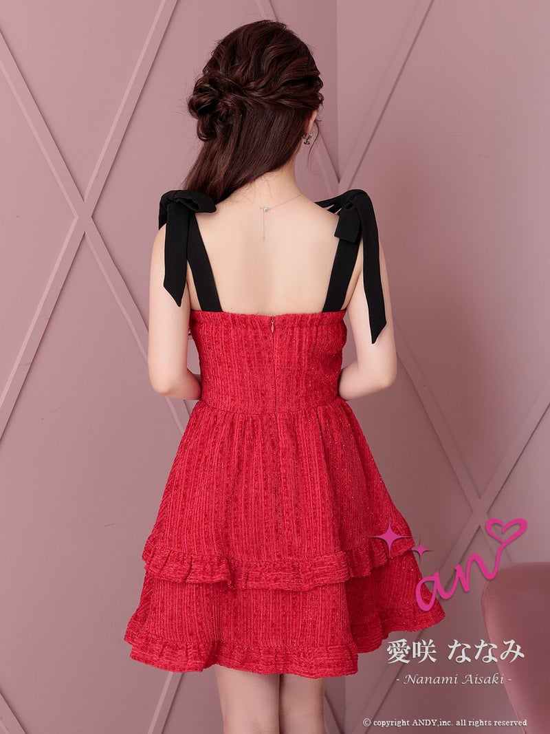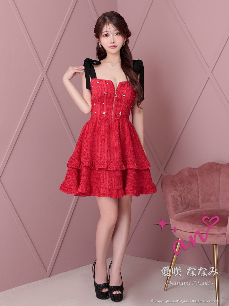 キャバドレス an アン 高級 ブランド Aライン ミニドレス 谷間 ノースリーブ ジップ バイカラー フリルスカート ショルダーリボン ビジュー ガーリー