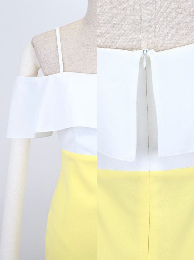 安い タイトミニドレス シンプル 大きいサイズ 大人 上品 肩あき バイカラー プチプラ キャバドレスのメイン画像