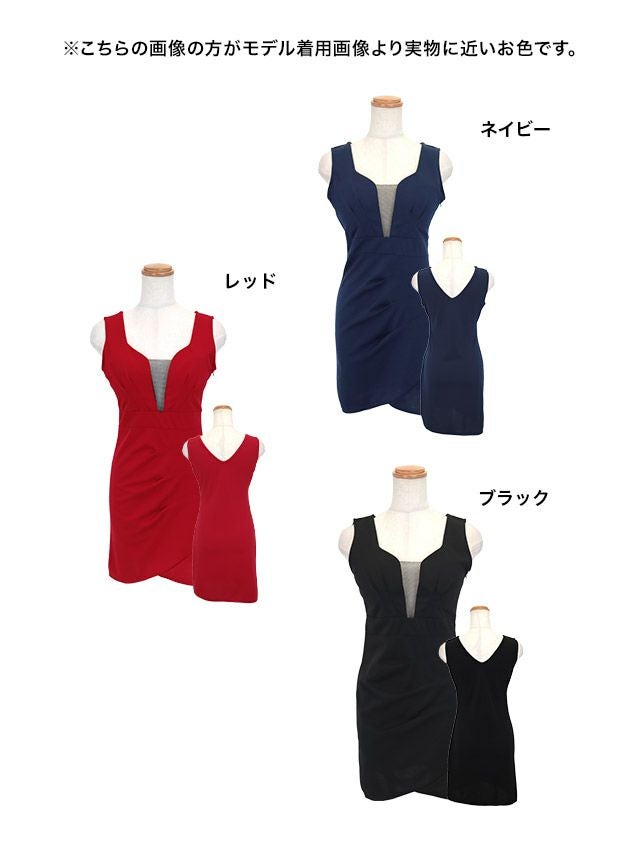 ラップ加工で美脚魅せ♪ スクエアネック バストシースルー ノースリーブ 谷間魅せ タイトミニドレス (向葵まる着用)