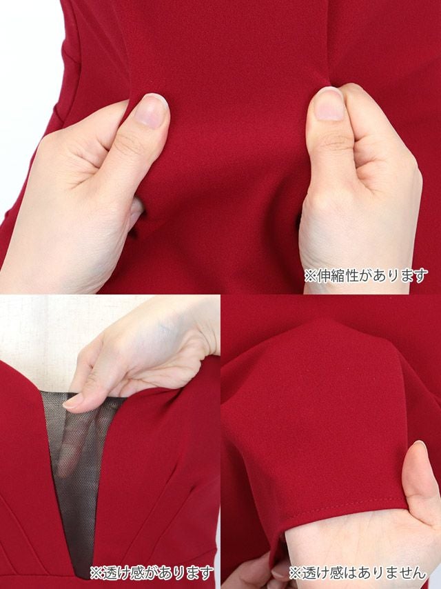 スクエアネック谷間シースルーノースリーブタイトミニドレスのイメージ画像1