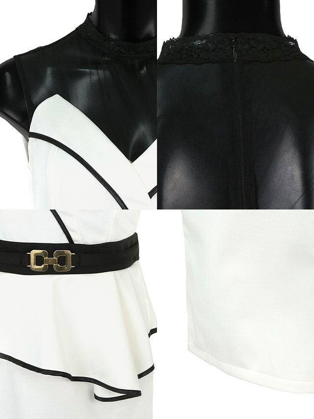 ウエストベルトノースリーブバイカラーシースルーペプラムタイトミニドレスの商品詳細1