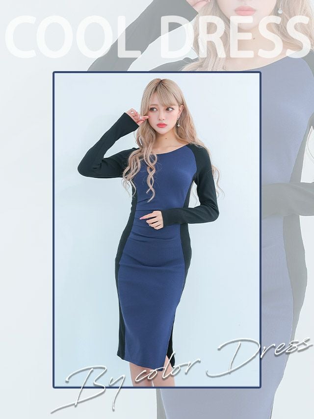 イメージ画像8 キャバドレス 長袖 Tikaholic ティカホリック miho着用 アシメトリー ネック 長袖 タイト ミディアムドレス ワインレッド×ブラック ネイビー×ブラック Mサイズ キャバ ドレス 安い 袖あり ナイトドレス キャバ嬢 キャバクラ ラウンジ スナック 通販