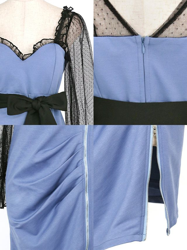 長袖ドットチュールウエストリボンサイドジップタイトミニドレスの商品詳細1