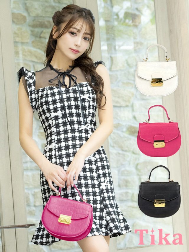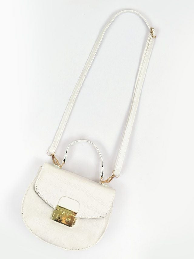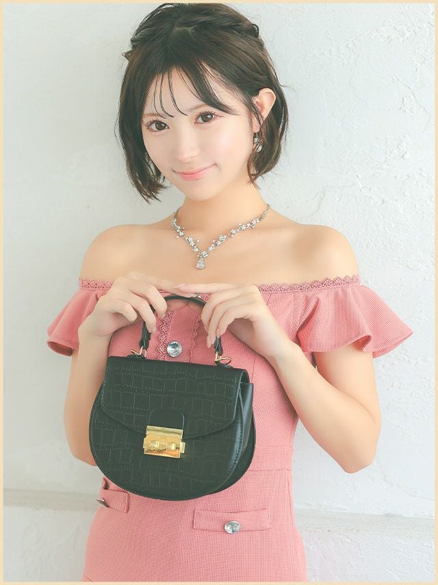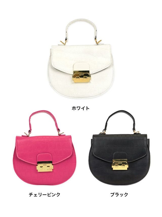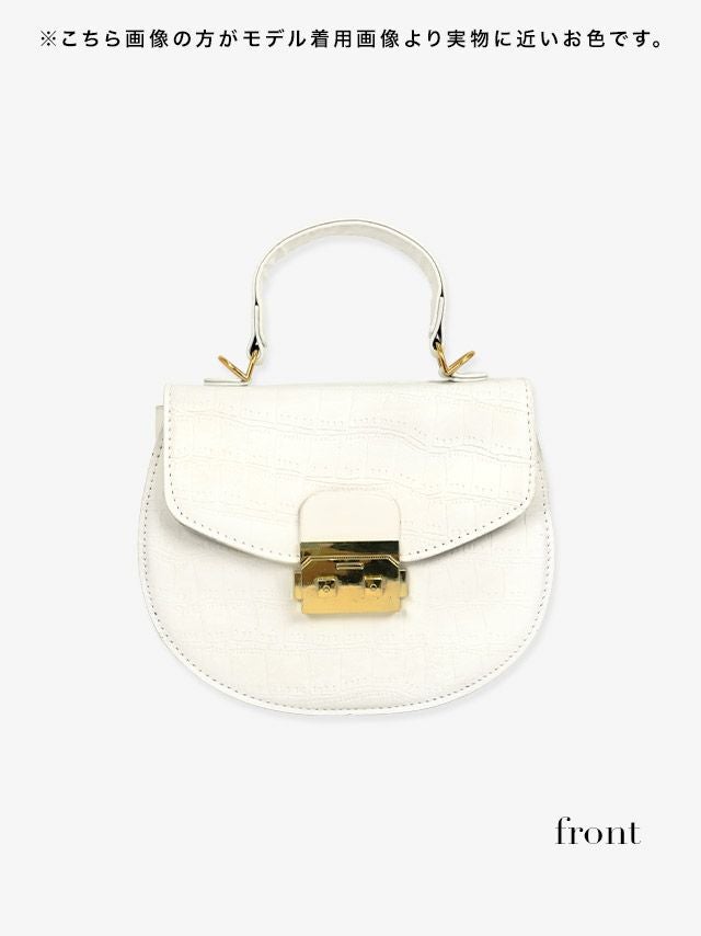 コーデに高級感をプラス♪ ワンカラー型押しクロコ風デザインラウンド2Wayハンドミニバッグ