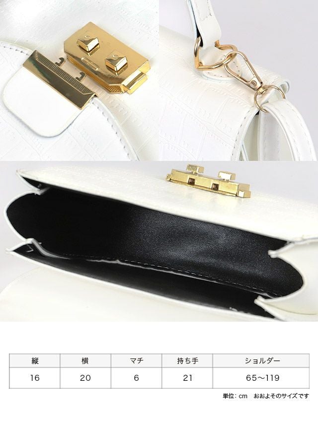 ワンカラー型押しクロコ風デザインラウンド2Wayハンドミニバッグのディティール サイズ表