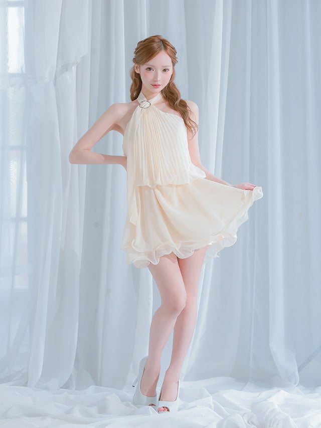 清楚な大人の可愛さを演出♡ [IRMA/イルマ] 高級 ブランド Aラインミニドレス ホルターネック 背中魅せ プリーツ シフォン ティアード フリル (れむ着用)