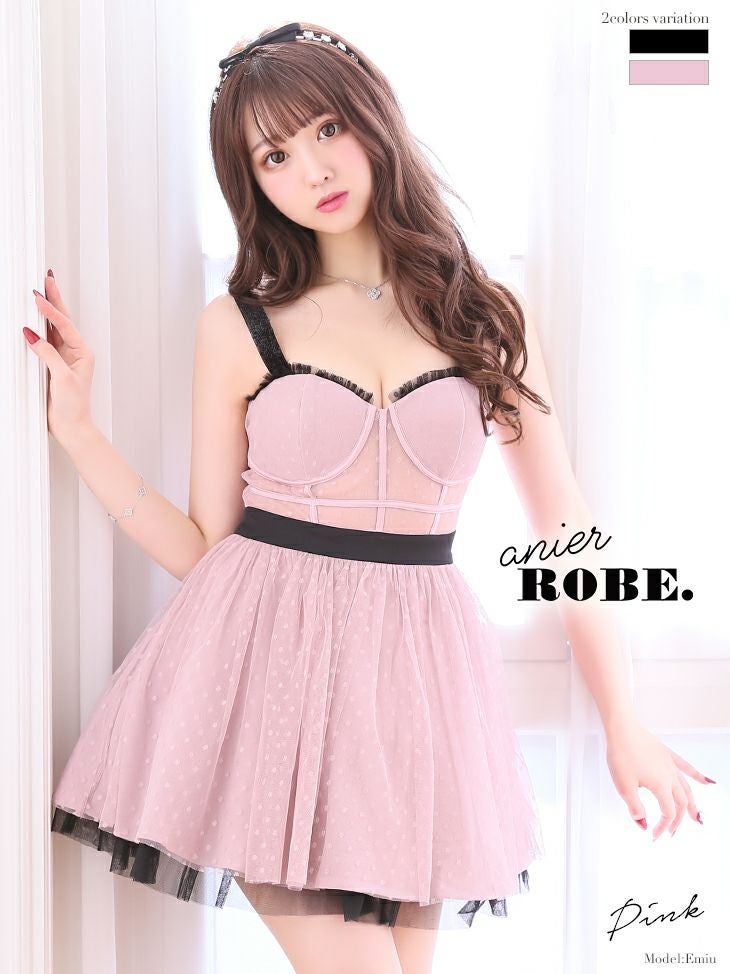 anier.ROBE アニエルローブ 高級コスプレ 高級ドットチュールバックリボンデザインキャットアニマルキャミソールフレアスカートミニドレス
