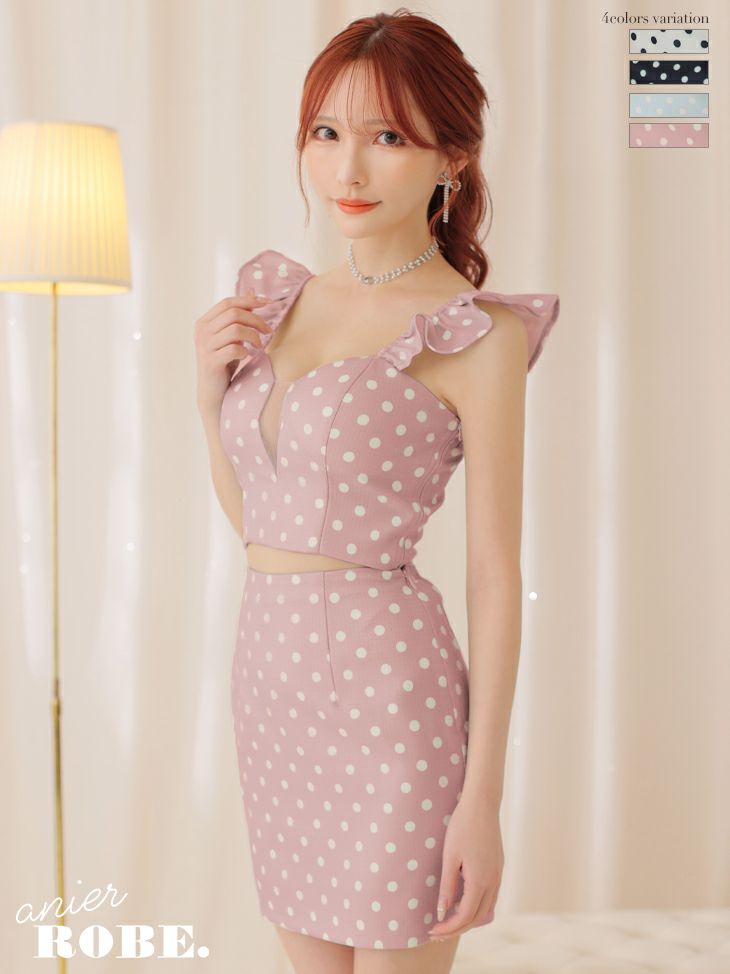 キャバドレス ミニドレス [anier.ROBE/アニエルローブ] 高級キャミソールドット柄スクエアネックフリルセットアップタイトミニドレス